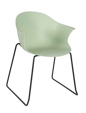 A unique, ergonomic design supported by a sleek black skid base. A chair that has a unique silhouette in any room, from conferences to classrooms.